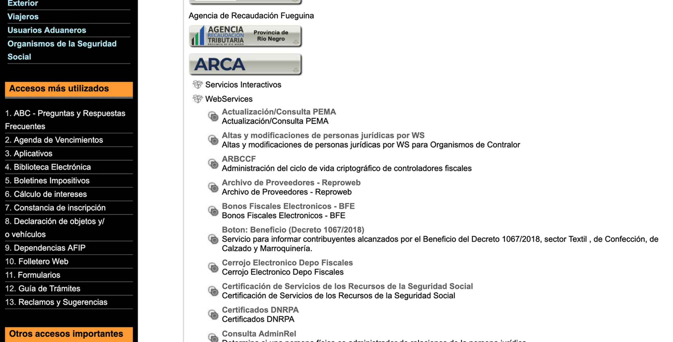 Abrimos ARCA > Web Services y elegimos el web service de Facturación electrónica.